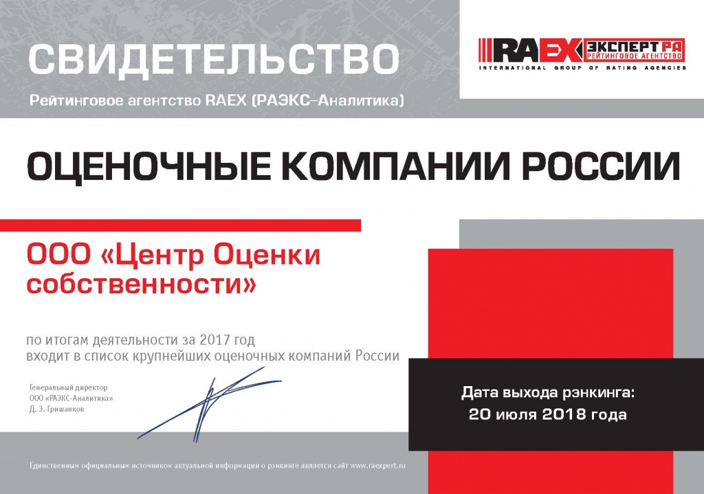 Несмотря на то, что среда на рынке оценочных компаний достаточно высококонкурентная, «Центр Оценки собственности» уверенно набирает позиции, желая ни в чем не уступать лидирующим игрокам рынка.